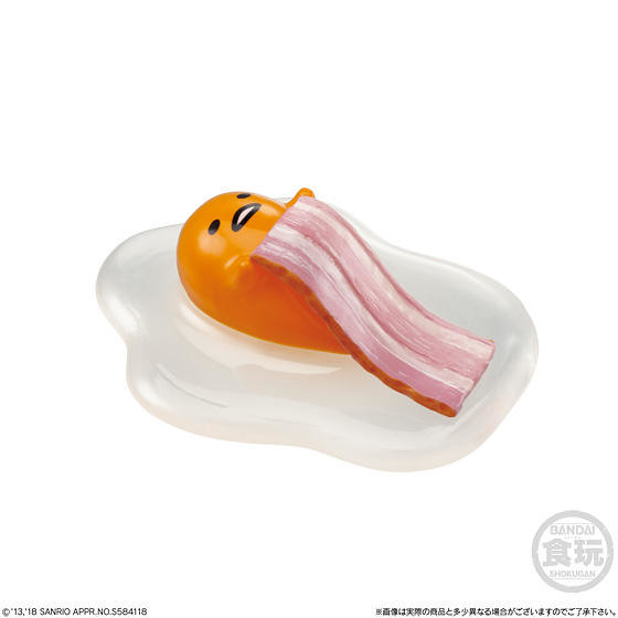日Bandai萬代玩具公司食玩事業部門這次將以大人氣角色「蛋黃哥」為題材,來推出「蛋黃哥 五週年紀念盒玩(リアルぐでたまマスコット ぐでたまアニバーサリー)」(名稱暫譯)的逗趣商品,此次特別於作品上追求其「透明感」,大量使用特殊的"透明材質"來表現蛋黃哥的蛋白部份,將推出約有六種不同造型的蛋黃哥,用培根肉當被子的模樣真是超級有趣味的啊!喜歡《蛋黃哥》的玩具人可以參考一下歐!