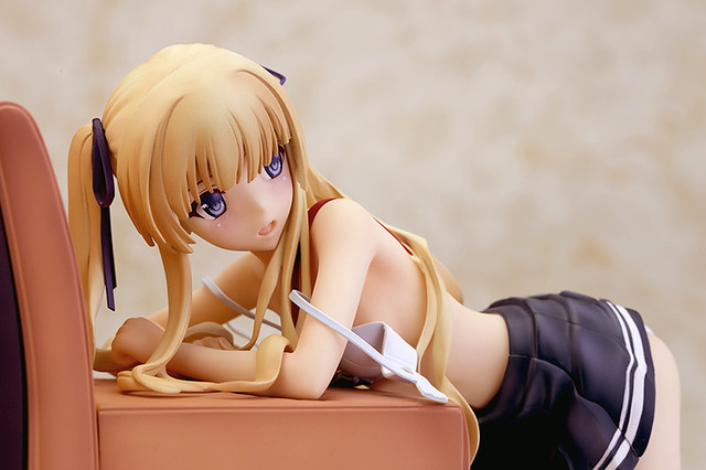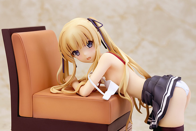 與前兩作相同,「澤村·史賓瑟·英梨梨 ~更衣中~ 1/7比例模型」是由原作插畫家「深崎暮人」完全監修,以其新繪製插畫為基礎立體化。透過出色的造型力,將英梨梨那洋娃娃般的可愛臉蛋、嬌小的身軀忠實再現,更衣中的她毫無防備地趴在沙發上,柔順的金髮披散在身上。從背後角度觀看,殺傷力十足的「絕對領域」有著柔軟質感,大腿肉被過膝襪擠出的肉肉相當精緻!英梨梨還能與先前發表的加藤惠、詩羽學姐組合展示!