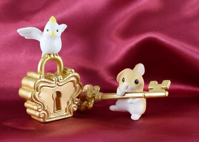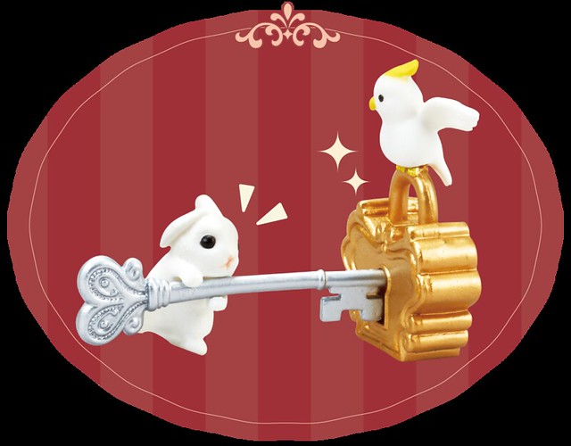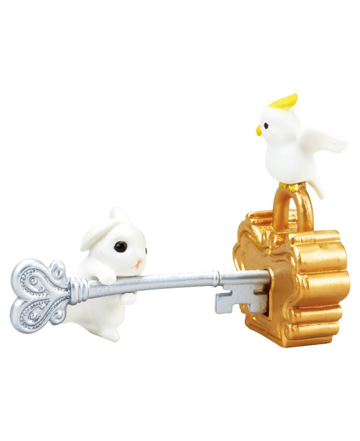 這次以《鑰匙和鎖(Key & Lock)》的設計加在"小兔與小鳥"上面,讓小兔子或是小鳥拿著鑰匙的模樣真是相當萌啊!鑰匙和鎖的款式還可以搭配呈現出要開啟的樣貌,感覺好像可以拿來送給喜歡的朋友,暗示可以打開對方的心房,適合拿來告白的一款轉蛋作品,喜愛兔子控的玩具人可以參考一下歐!