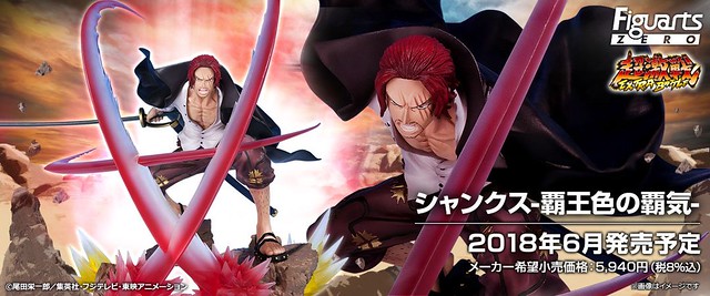 將酷帥的造型完整重現、讓必殺技姿勢凝縮於最帥氣一瞬間的「Figuarts ZERO 超激戰-EXTRA BATTLE-」系列,繼第一彈:魯夫的「橡膠鷹鞭」、第二彈:羅羅亞.索隆「三刀流 極.虎狩」,第三彈:香吉士的「惡魔風腳 一級絞肉」,第四彈:馬可的「不死鳥ver.」以及第五彈:波雅·漢考克的「愛颶風ver.」還有第六彈:托拉法爾加·羅「伽馬刀」,還有第七彈:薩波的「火拳」之後,將繼續推出紅髮傑克的「覇王色之覇氣」!~