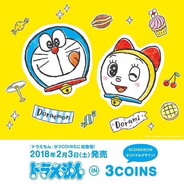 日本知名的百円商店“3COINS”,將與《哆啦A夢》聯名合作,推出一系列300~500日幣就能輕鬆入手、經濟由實惠的原創聯名商品系列,並且將分為“彩色”與“黑白”兩種不同的系列分支,預計2018年2月3日開始於全日本的“3COINS”販售。