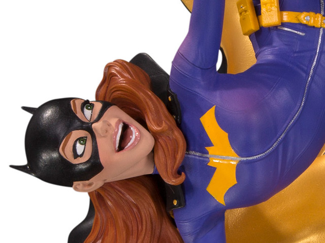 這次的蝙蝠女是由美國美女漫畫家Joelle Jones 所設計,將這位超人氣女英雄注入俏皮可愛的風格,一手撐地、另一手拿著手機,再以雙腳保持平衡,用彷彿特技演員一般的姿態來自拍,真的是超高難度、超華麗的Pose 啊~除了面罩與披風外側的黑色,整體服裝採用復古味十足的紫、黃搭配,緊身衣和長髮的線條刻畫都十分細膩,下垂的披風也巧妙地成為右手之外的另一支點,臉上掛著大大的笑臉,整體給人相當歡樂的氛圍,超適合放在桌上展示,這麼Q的蝙蝠女絕對能帶給你一整天的好心情~!
