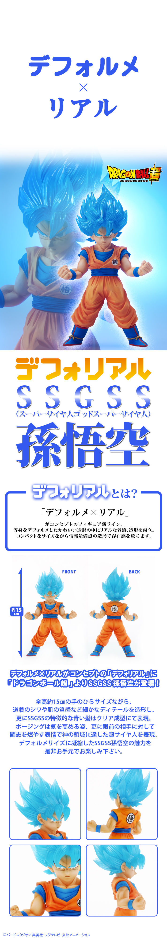 日本X-PLUS 公司(株式会社エクスプラス)旗下的「Q 版擬真系列(暫譯)」(デフォリアルシリーズ),之前以《七龍珠》動畫為題材公開過「超級賽亞人 孫悟空」之後,近日公開將繼續推出《七龍珠超》當中藍色頭髮的「SSGSS孫悟空」系列續作。