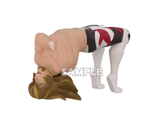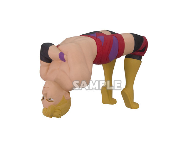 「岩石落下固定技(バックドロップホールド)」翻摔並固定對手時有運用到後腰橋、但施術者的頭頂並不著地、發招之後頭頂有著地的招式則是「德式翻摔固定技(ジャーマンスープレックスホルド)」,施展招式時都需要有強力使用"腰部力量"的技巧,摔角手有時就會做出"後腰橋姿勢"來鍛鍊腰部的支撐力。這次將收錄有動畫當中"老虎假面"與"黑暗虎面"再加上"岡田和睦(オカダ・カズチカ)"、"棚橋弘至"以及"真壁刀義"等等三位摔角手,喜愛有趣盒玩商品的玩具人可以參考一下歐!