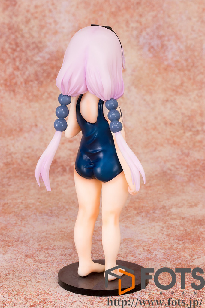 「神奈神威 學校泳裝 ver. 1/6比例模型」以經典的「舊式學校泳裝」造型立體化,康娜肉肉的臉頰和大腿等特色皆精美再現,淡紫色的頭髮與髮飾也具備精緻的細節,舊式學校泳裝則考究地表現出細部的皺摺與布料的厚度,並施以高對比的明暗色彩讓泳裝更具立體感。
