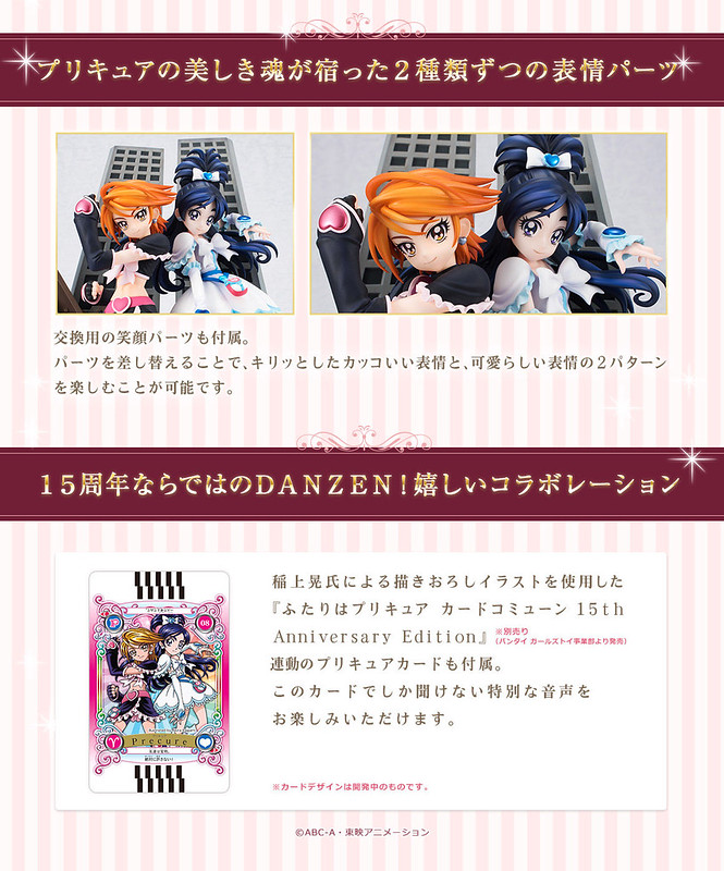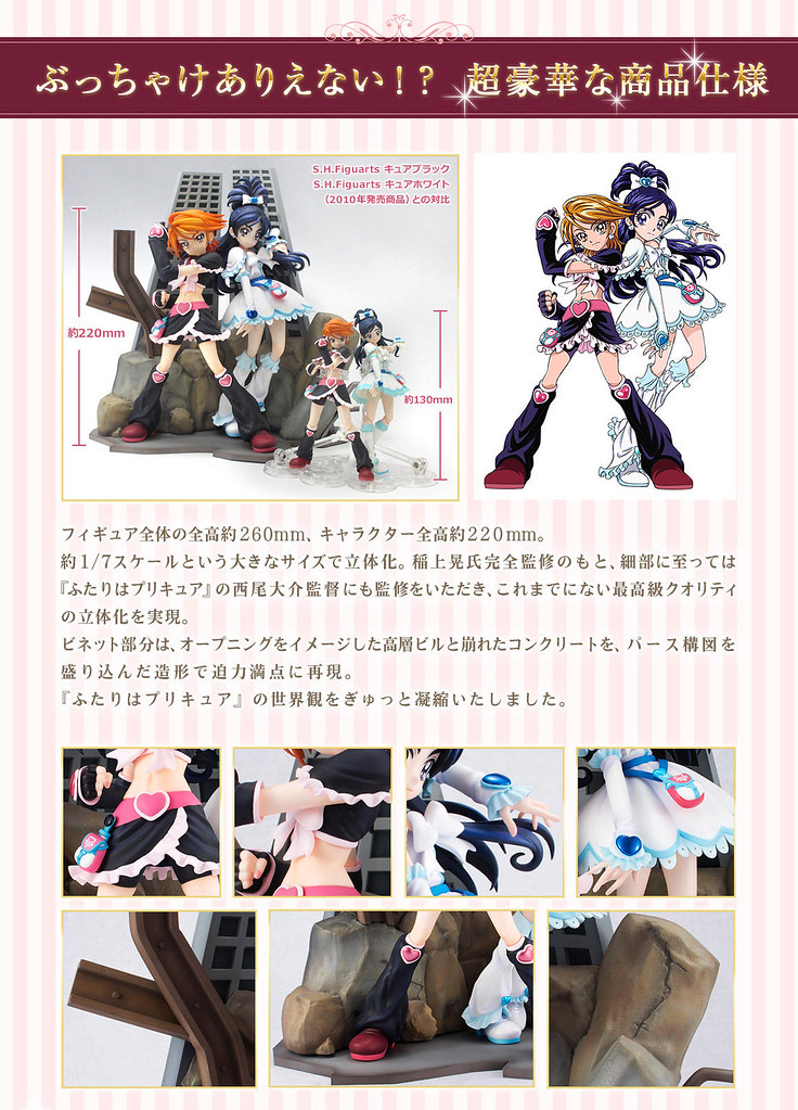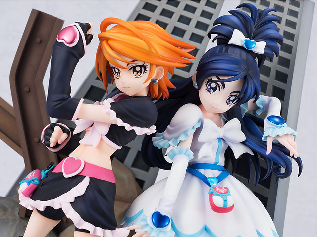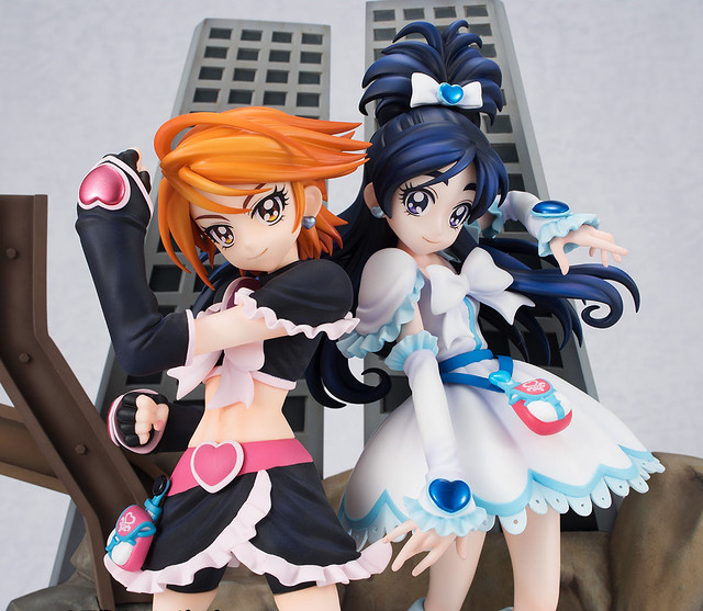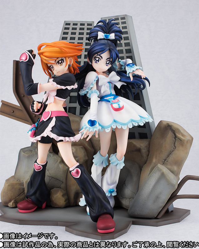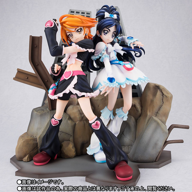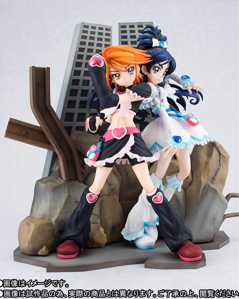 「TAMASHII PREMIER 黑天使&雪天使」以初代《光之美少女》角色設計「稻上晃」老師所繪製的插圖為基礎,將全高約 22 公分的黑天使(美墨渚)與雪天使(雪城穗乃香)立體化,在「稻上晃」老師與動畫導演「西尾大介」的監修下,兩人從頭髮、神運到服裝細節,每一處都極度還原當年動畫的風格,表情還能從嚴肅臉替換成微笑臉。而背後的場景更以片頭動畫那魄力滿點的構圖為原型,以透視法呈現層層堆疊全高 26 公分的岩石、鋼筋、大樓,充分展現了初代《光之美少女》的世界觀!