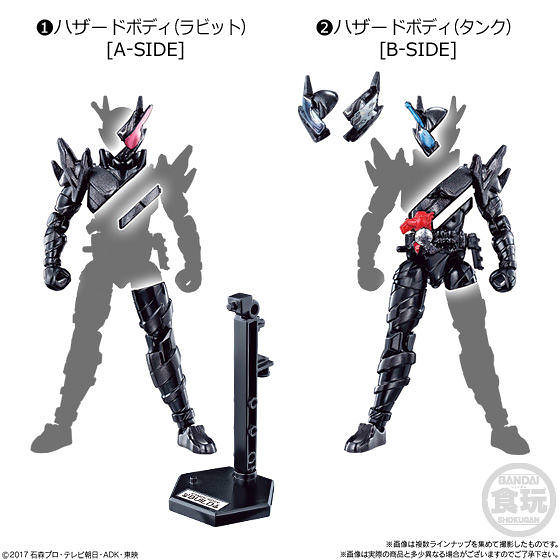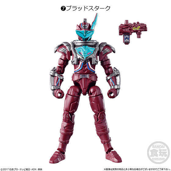 這次的第六彈將收錄有假面騎士Build的「兔子坦克危險形態」兔半身〔A-SIDE〕與坦克半身〔B-SIDE〕,另外也有「EX-AID型態」的醫生半身(ドクターハーフボディ)與遊戲半身(ゲームハーフボディ),還有本作第3位登場騎士「假面騎士Grease(仮面ライダーグリス)」的裝甲set與身體素體,以及謎的角色「血逐(ブラッドスターク/Blood Stark)」等等七款盒裝內容,喜愛《假面騎士Build》系列的玩具人可以參考一下歐!