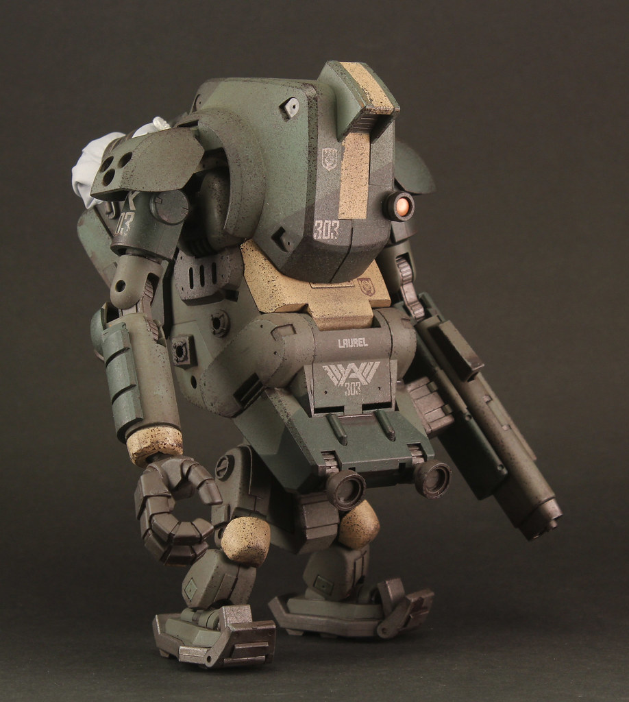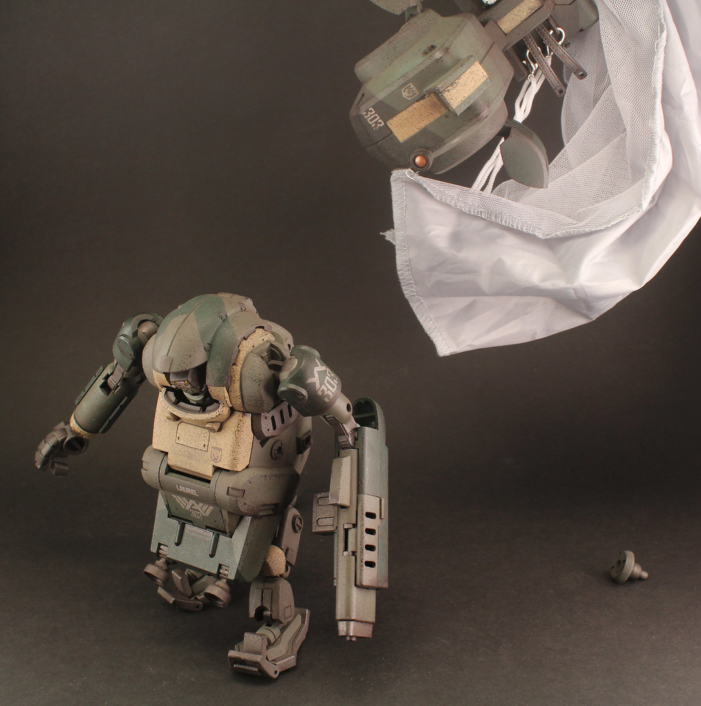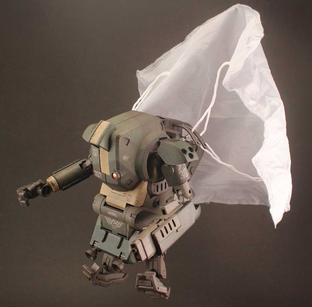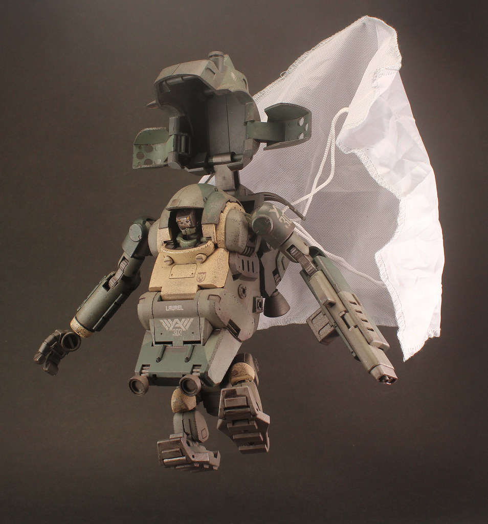 本次所推出的作品,是以《酸雨戰爭》3.75吋於2015 年發行之後就火速售罄、市面上一機難求的傑作「海軍陸戰隊 人形機甲 Laurel」改版升級之後所推出的新作。 藉由設計師Kit Lau 老師的精心設計,在不破壞原本機體的精彩造型以及考量真實性之下,外掛組裝了可分解式高空速降裝置,讓人型機甲升級為能夠進行空降突襲任務的全新單位。 除了頭部的夜視儀與防護裝置之外,背部與腹部下方也加裝了高空速降裝置與降落傘,完成空降任務之後即可卸除裝置變成人型機甲。