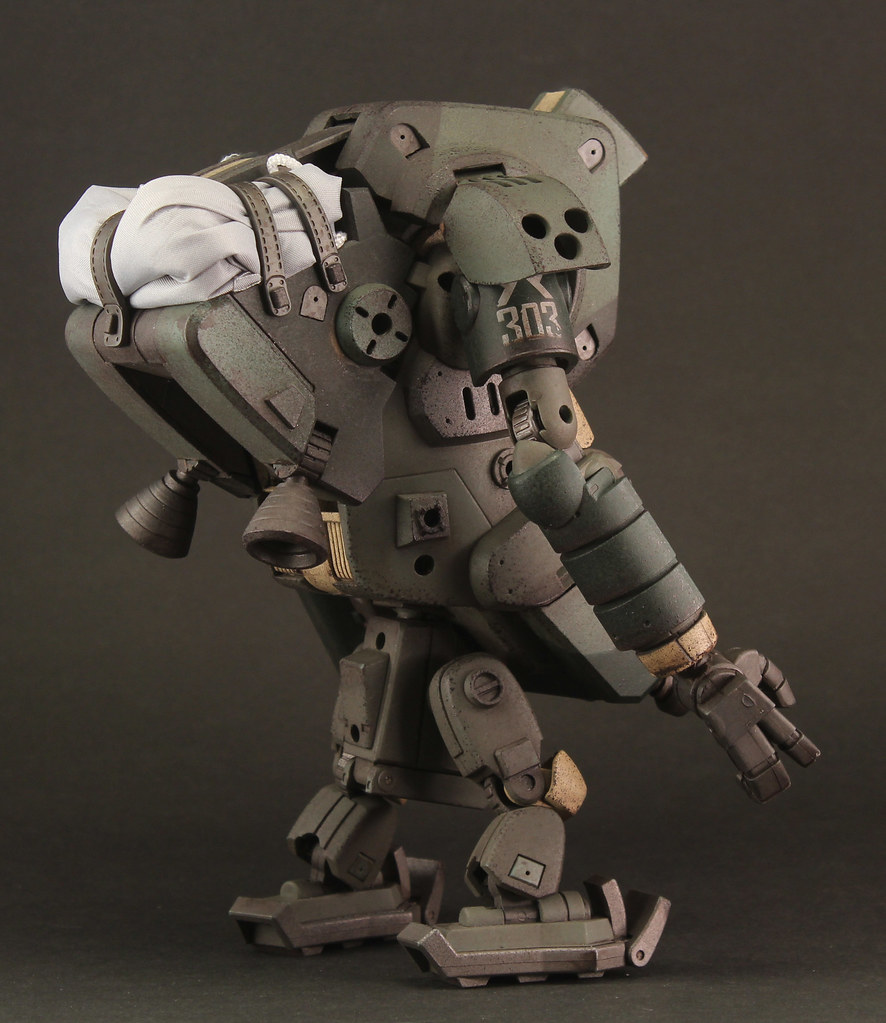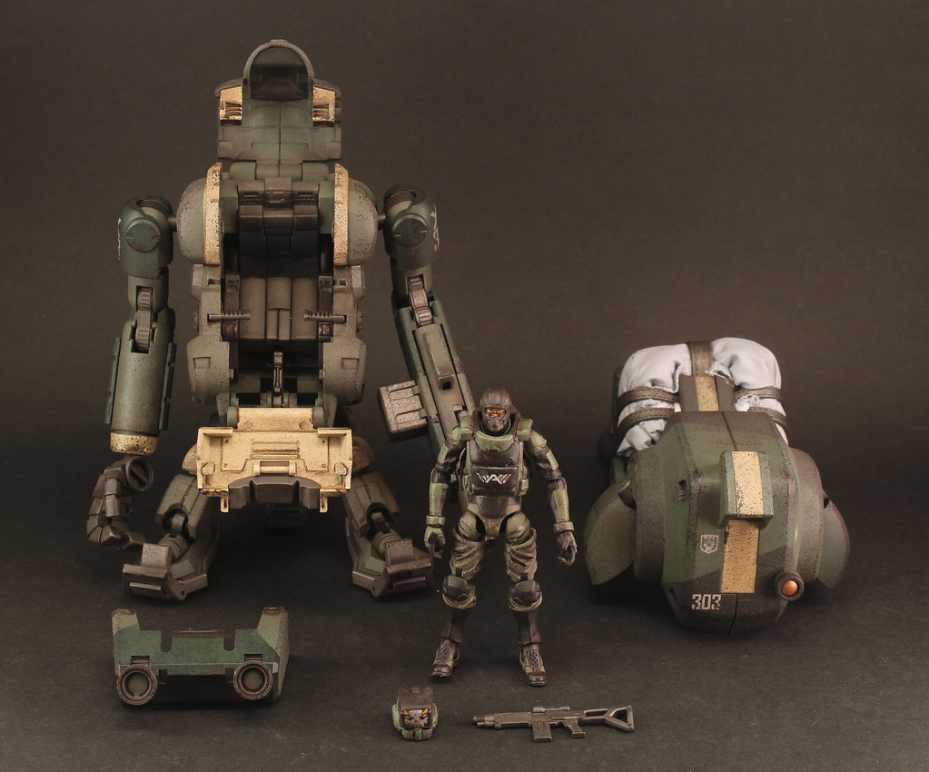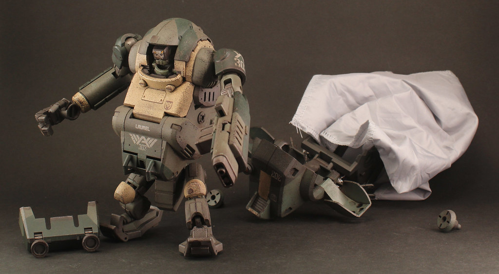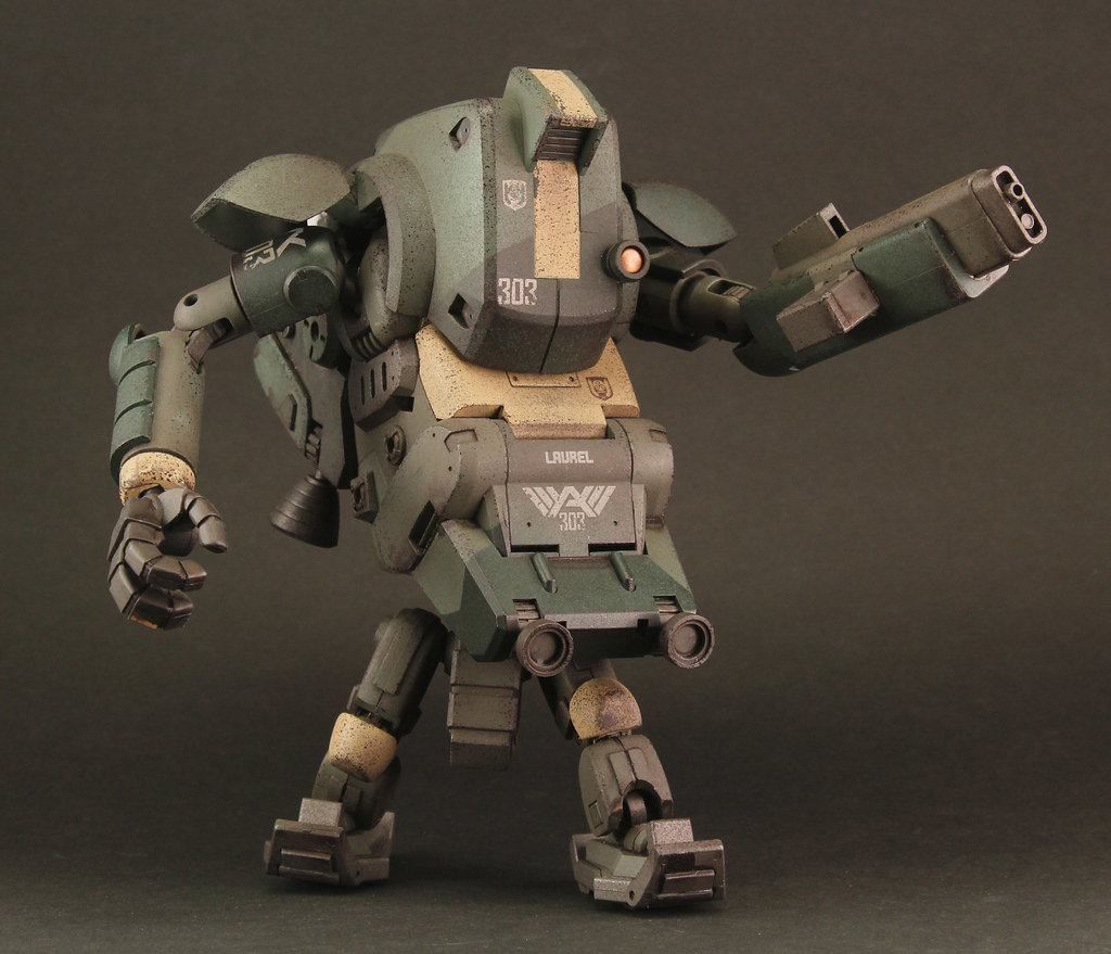 本次所推出的作品,是以《酸雨戰爭》3.75吋於2015 年發行之後就火速售罄、市面上一機難求的傑作「海軍陸戰隊 人形機甲 Laurel」改版升級之後所推出的新作。 藉由設計師Kit Lau 老師的精心設計,在不破壞原本機體的精彩造型以及考量真實性之下,外掛組裝了可分解式高空速降裝置,讓人型機甲升級為能夠進行空降突襲任務的全新單位。 除了頭部的夜視儀與防護裝置之外,背部與腹部下方也加裝了高空速降裝置與降落傘,完成空降任務之後即可卸除裝置變成人型機甲。