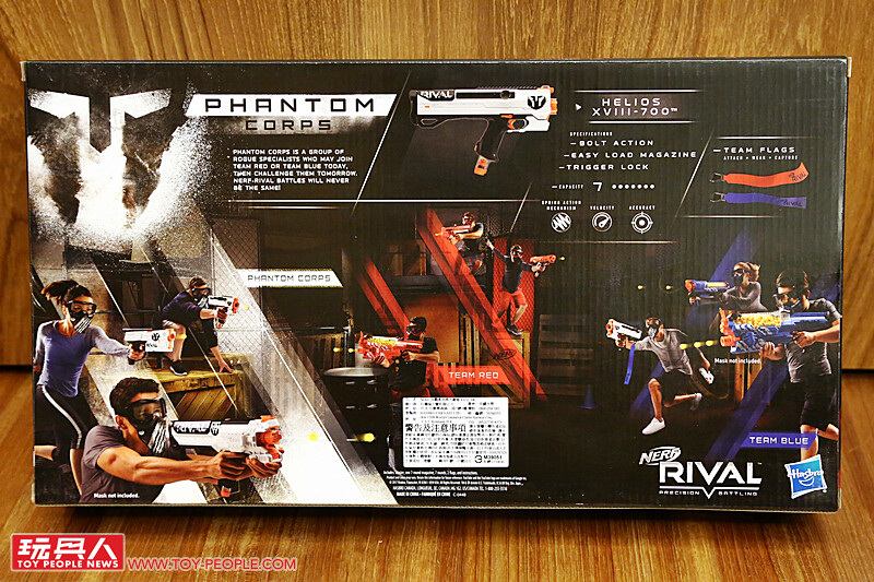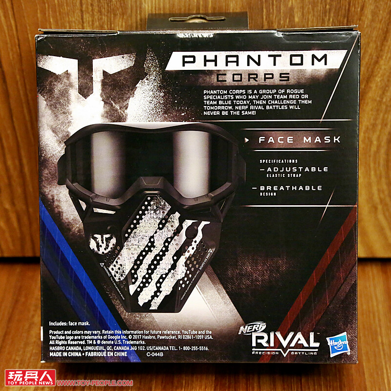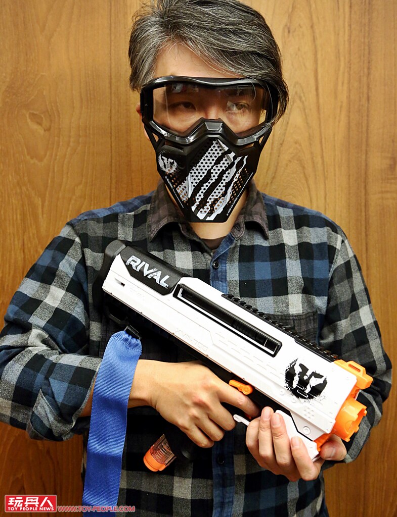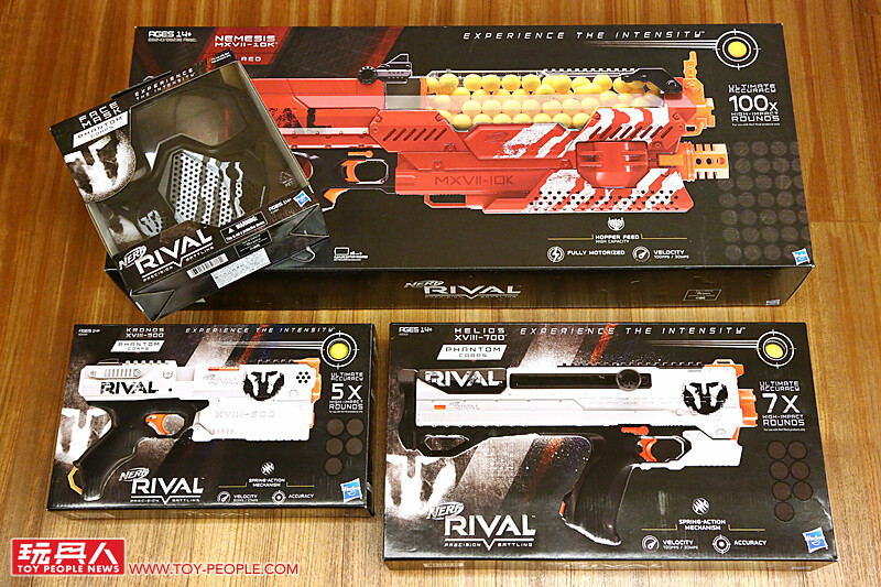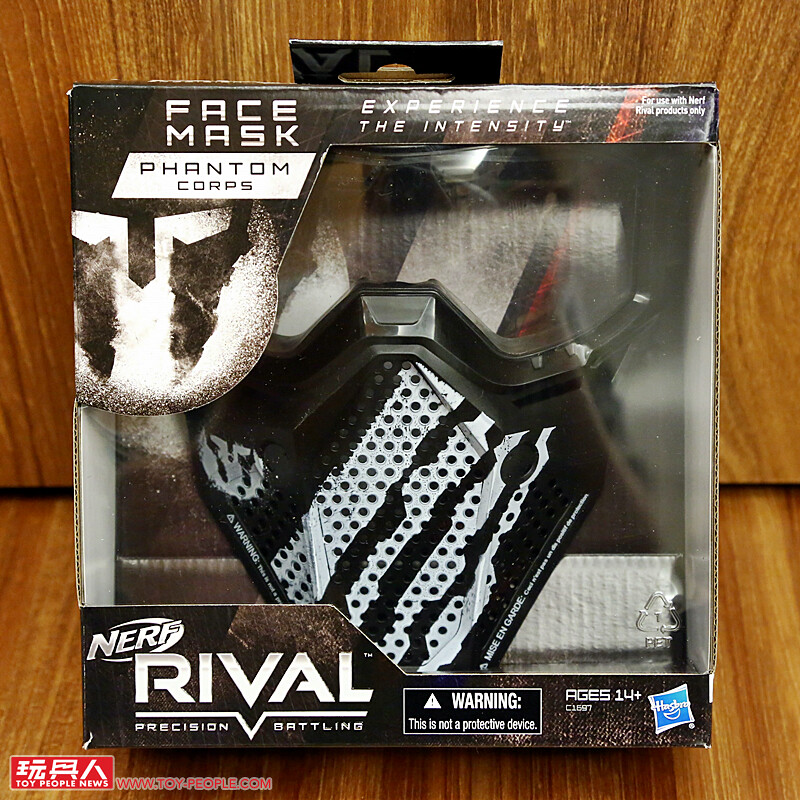 ▼ 由於NERF RIVAL 決戰系列擁有相當高的射擊力道,官方建議在遊玩時必須配戴護具,而官方自己也推出了專屬的保護面具,依據紅、藍分隊推出了兩種配色。 而搭配「幻影軍團」的上市,同樣也推出了「幻影軍團」的白色版本。