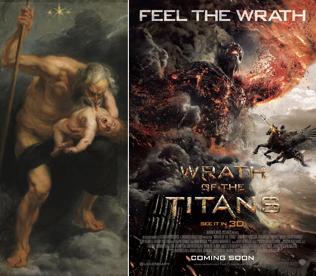 ▼ 巴洛克畫派早期代表人物彼得·保羅·魯本斯,於1636 年所繪製的名畫《克羅諾斯吞噬其子》;2012年上映的史詩動作冒險奇幻電影《怒戰天神》,克羅諾斯被設定為一個擁有驚人的毀天滅地之力的熔岩巨人。
