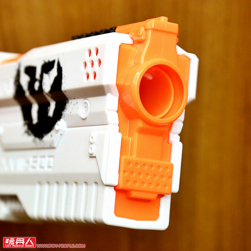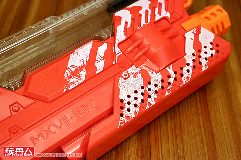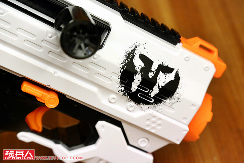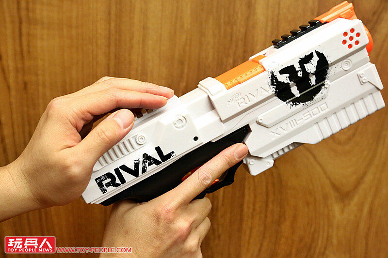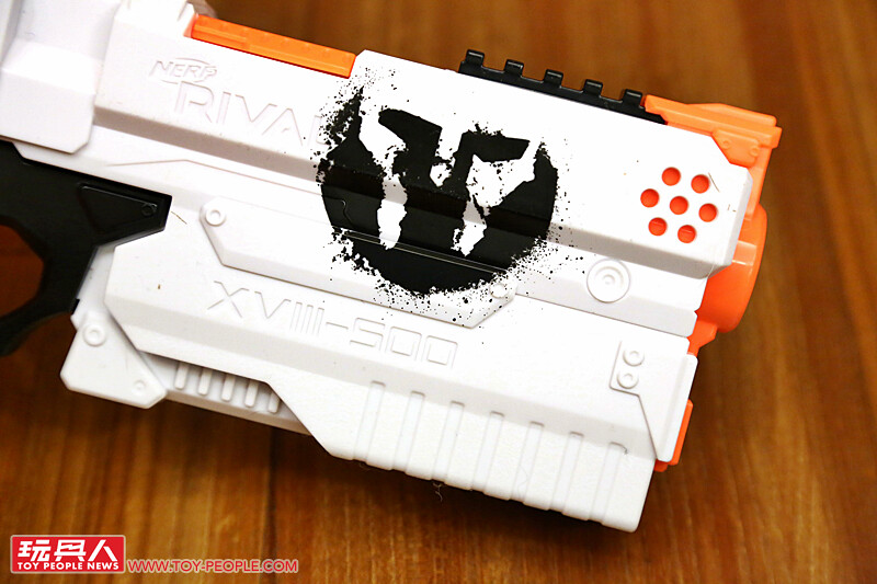 ▼ 槍身上的NERF RIVAL、XVIII-500 字樣刻意使用了刻印形式淡化發射器的個人特色,僅留下了幻影軍團的圖樣,強調它能夠任意變化身份的特質。