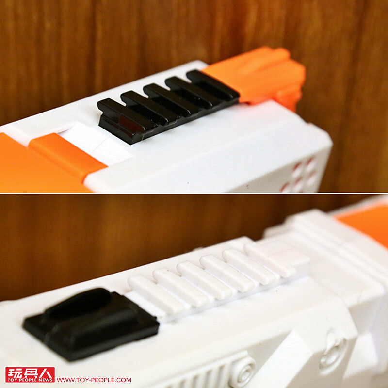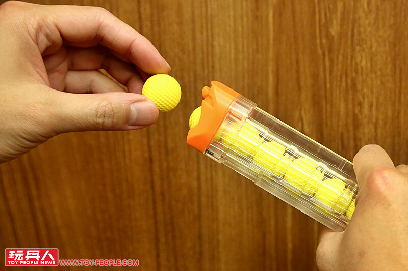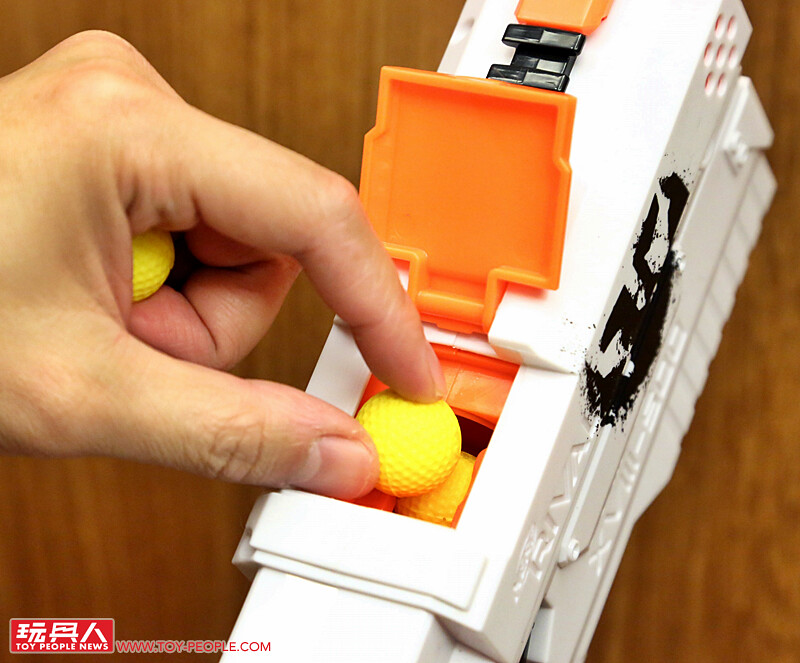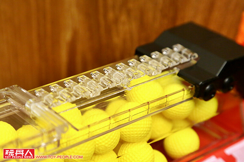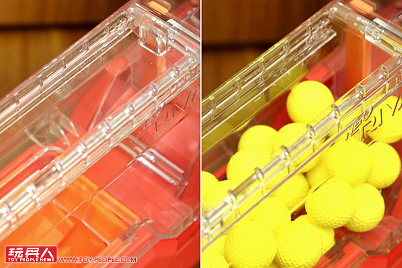 ▼ 球彈艙採用全透明設計,上面滑蓋推開即可裝填。 由於是透明的蓋子,裝填完畢記得要蓋上喔~ 不要像小編一樣射的超開心結果不小心把球彈灑一地...QQ