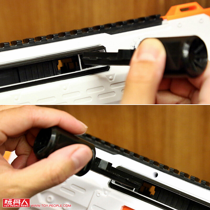 ▼ 槍身上緣的前方與後方設置有戰術軌道,讓各位玩具人能夠自由依據需求外掛裝備升級。