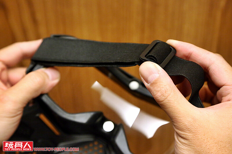 ▼ 面具的束帶使用的是彈性材質,並附有調節環,能夠依據需求自由調整面具的鬆緊,相當的方便又安全。