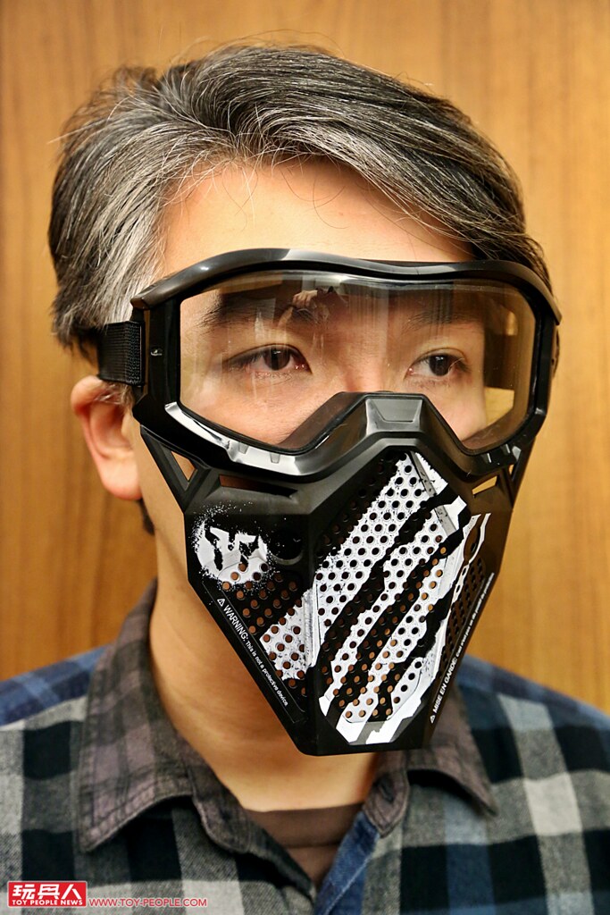 ▼ 實際配戴起來的模樣。 護目鏡刻意加大很多,讓配戴時的視野範圍不會受限。(其實小編個人的感覺是視野完全不受限制) 不過很可惜的是,沒有辦法在戴眼鏡的情況下配戴這副面具。