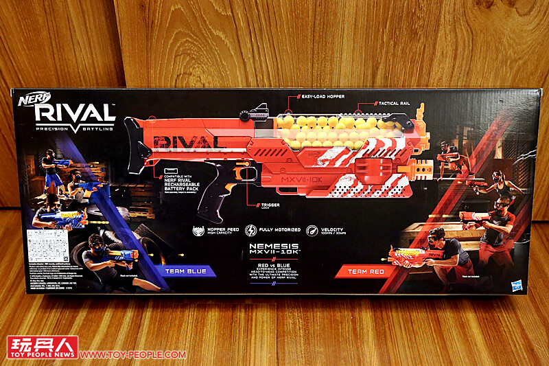 另外,NERF 決戰系列標榜的是分組對戰競技的概念,所以每款發射器都會同步發行紅 & 藍兩種配色以方便分隊識別(死侍雙槍限定版是:死侍隊 & 藍隊 XD),並且發射器的型號命名全部使用希臘神祇之名來命名,比方說我們之前介紹過的阿波羅XV700 與宙斯XV1200。