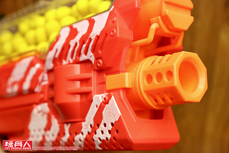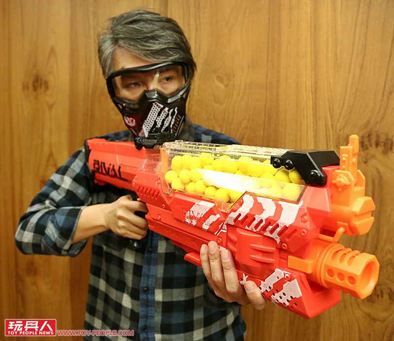 ▼ 特製的球彈是軟性材質製作,帶有Q彈的質感;但是透過決戰系列發射器強力射出之後力道還是蠻大的,把玩時請務必謹慎,並推薦戴上護具。(建議適用年齡為14歲以上)