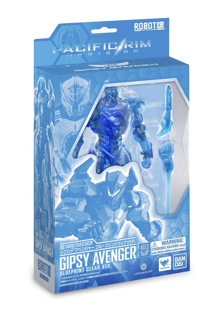 「ROBOT魂 <SIDE JAEGER>吉普賽復仇者 藍圖透明ver.」所使用的造型與屠獸劍、GRAVITY SLING等收錄武裝都與一般版相同,但成形色全面更改為透明藍,並施以精緻的金屬藍塗裝,在不同角度的光線照射下,各部位藍色的深淺也會隨之變化,再現了電影早期公開的「吉普賽復仇者 設計藍圖」。