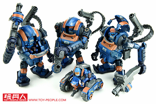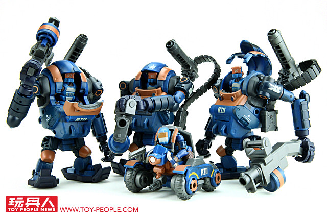 ▼ 緊接著登場的,就是《酸雨戰爭》全系列最熱門、最快銷售一空的機體:人型機甲。 繼上一波推出了沙漠人型機甲之後,這次推出的是3.75吋系列未曾推出過的單位配色:R711鎮暴人形機甲LA3R