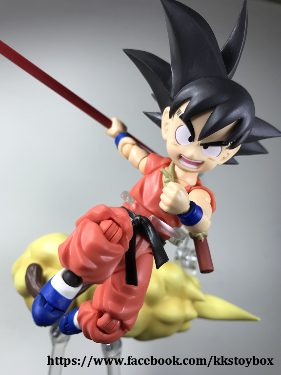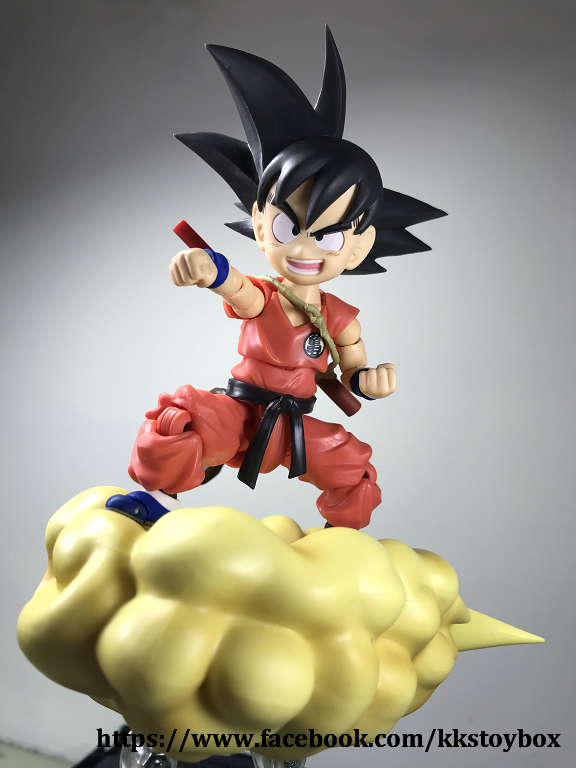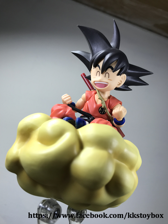 1.配件給得很豪邁。手形很完整,金箍棒不意外的是收起和取出兩種型態。讓我訝異的觔斗雲,份量超重,還有兩隻主要支架可以撐起,再配合副支架讓悟空穩穩站在上面。四星龍珠可以和shf神龍的底座連動,可見之後全部龍珠可能收齊?