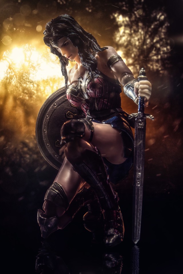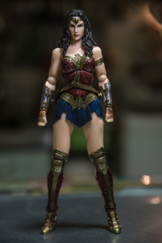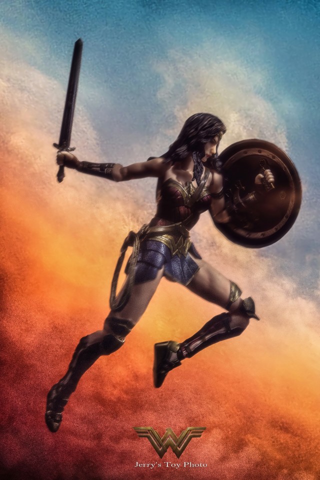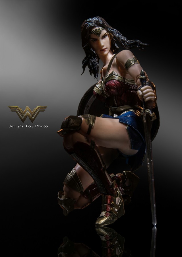 說的有點離題了,回到正題雖然後來Play Arts改又出了再版的獨立電影版本神力女超人,但是說真的這也許是個人觀感吧~雖然第二版的製作的確是比較精良也比較進步,不過可能因為第二版的表情似乎也是黛安娜還在初出茅廬天真爛漫的階段,所以表情也比較無邪甜美了點,似乎不是我想要表現出來歷經戰爭那個堅毅凶狠的表情,所以最後抉擇再三,還是帶了初版的神力女超人回家了。