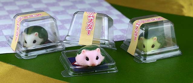 這次以日式和菓子「柏餅(かしわもち)、豆大福」為題材,柏餅外型像中國的茶果,呈現圓形或者是半圓形的模樣,餡的種類有紅豆粒餡、豆沙、味噌餡等等,流行於日本關東地區;豆大福則是日本和菓子的其中一種尺寸較大,是包著紅豆餡的日本式麻糬。這次將柏餅與豆大福加上倉鼠成為逗趣的轉蛋作品,真是療癒又相當可愛,喜歡《倉鼠》系列轉蛋作品的玩具人可以參考一下歐!