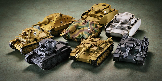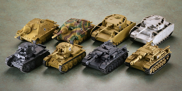 這次德國坦克裝甲師團編 2 將收錄有"38(t)輕型戰車"、"3號突撃砲F型"、"追擊者輕型驅逐戰車(ヘッツァー軽駆逐戦車)"與"4號戰車H型"等等四種類師團的武裝坦克,每款預計有兩種不同配色的塗裝,總共約有八種類各式坦克戰車可以收藏,喜歡軍事小車收藏的玩具人千萬別錯過了啊!