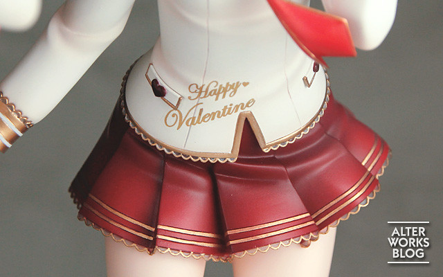 「矢澤日香&西木野真姫 情人節篇 1/7 比例模型」忠實再現了《Love Live! 學園偶像祭》的情人節活動限定卡面,是一組包含兩人的閃光作品!這次的學園風服裝樣式雖不及過去作品華麗、複雜,但細部的造型、塗裝依然細膩,複雜的布料皺摺突顯出服裝下的體態,透過漸層色彩描繪出光影效果,以精緻的金色塗裝點綴服裝的邊緣,更印下令人心動的「Happy Valentine」字樣,搭配兩人緊握的手掌,真的快被閃瞎啦~~!
