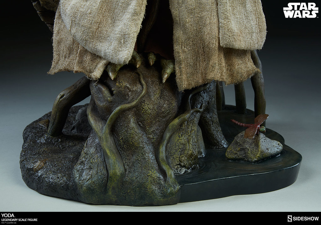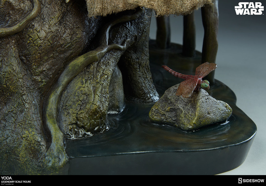 「尤達 1/2 比例全身雕像」全高約45.7 公分,以他在《星際大戰五部曲:帝國大反擊》中隱居於達可巴星(Dagobah)的造型為基礎來打造,全身的服裝、皮膚質感、蓬鬆的白髮皆考究地再現,那雙眼睛彷彿真的透露出一股睿智的光輝啊~拄著枴杖的樣貌更是相當傳神,而地台則是以達可巴星的沼澤地型來設計,石塊、藤蔓、樹木的質感都很是逼真,還有類似蜻蜓的生物在一旁,最大限度地還原了電影中的造型設定。對於人生感到迷惘的玩具人,一定很需要把尤達大師帶回家指點迷津吧~