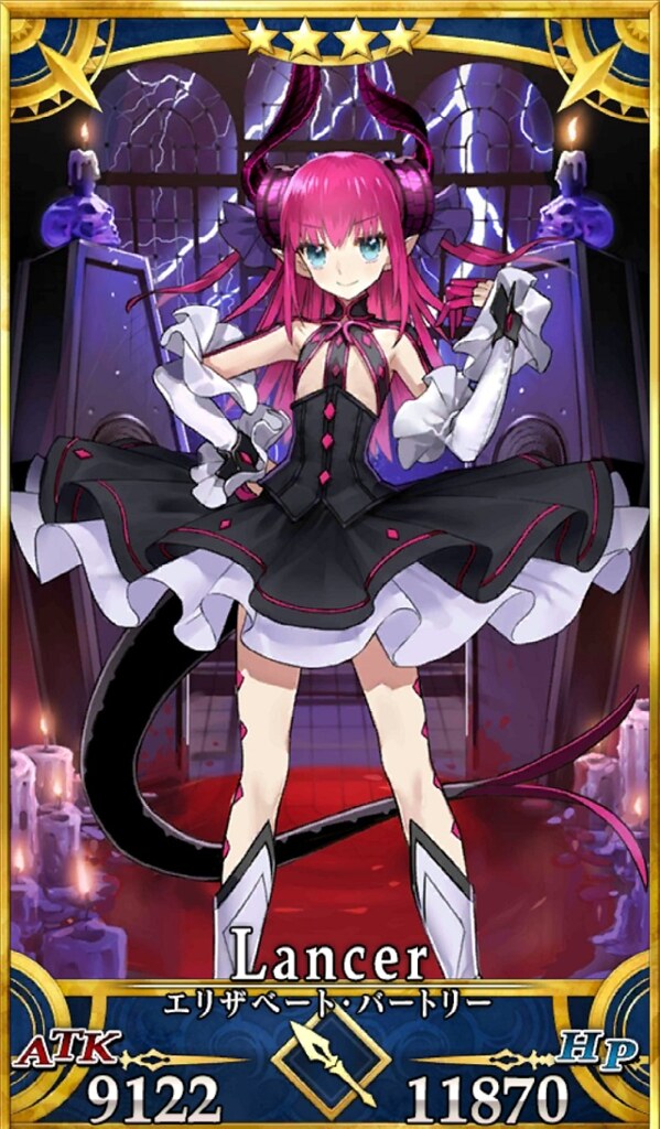 伊莉莎白‧巴托里首次登場於《Fate》系列遊戲《Fate/EXTRA CCC》中,是一位個性外向強勢的紅髮女孩,有著龍角與龍尾的特徵,被玩家稱為「龍娘」,這是因為她來自以龍牙作為家紋的匈牙利著名家族「巴托里」,還是史上殺人數量最多的女性連環殺手,被稱為「血腥伯爵夫人」。不過此時被召喚出來的伊莉莎白尚未犯下罪行,只是一名純潔的14歲少女,嚮往著戀愛與偶像文化,雖然聲音甜美但卻是毀滅級的音癡。但她的道德觀依舊歪斜,不僅不明白他人的痛苦,還將人類視為一般動物,屬於邪惡的「反英靈」。