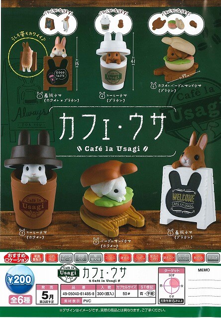 推出多款趣味動物轉蛋作品的Epoch(エポック)品牌,以可愛兔子為題材已經推出過「日式和菓子兔」、「兔兔洋菓子本舗」、「搗麻糬兔」、「回萌兔」、「散歩小兔」、「靴子胖小兔」、「兔子的自由時間」、「兔兔屁屁」和「湯匙小兔」以及「取暖小兔」等等多款轉蛋的商品,這次將繼續推出超級可愛的「兔子咖啡廳(カフェ・ウサ)」(名稱暫譯)系列續作。