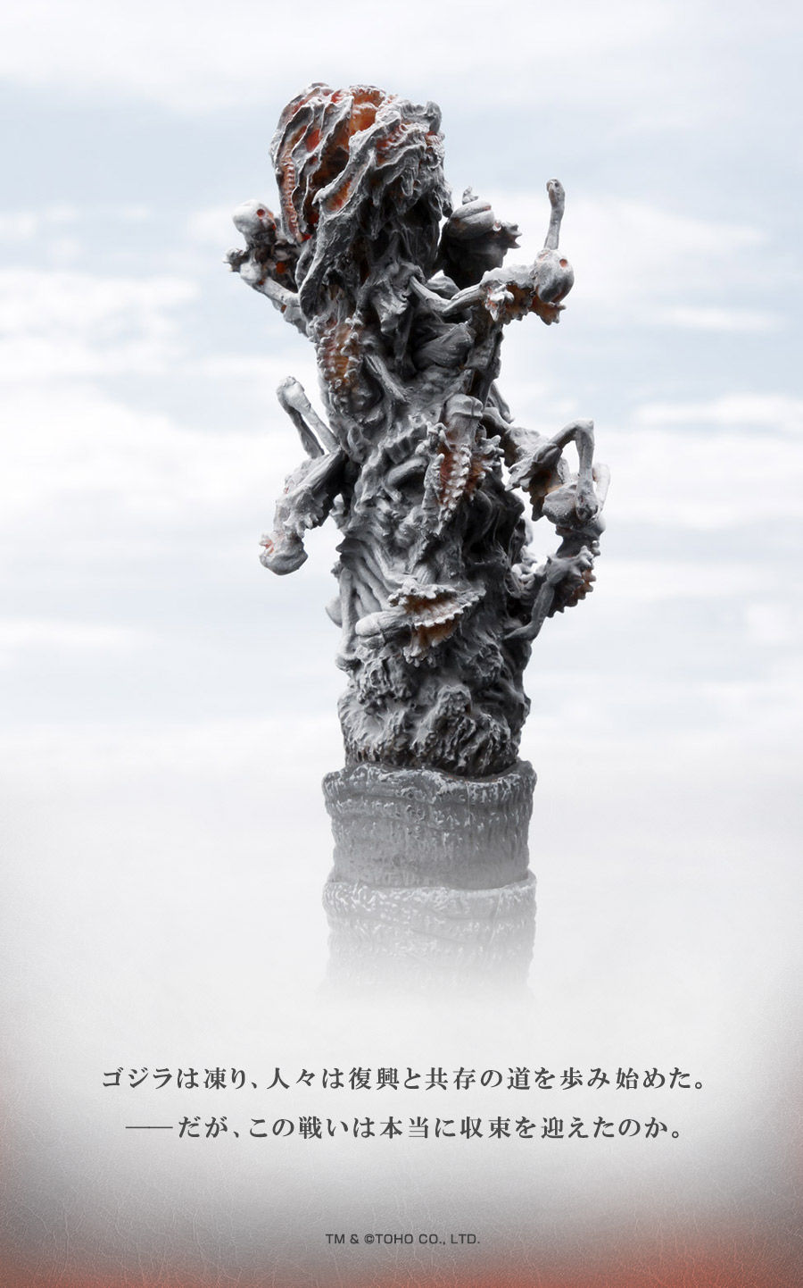 在故事劇情進行至最後的階段所使用"血液凝固劑"來凍結哥吉拉 第4型態的經典模樣,這次一樣以S.H.MonsterArts可動系列來精彩呈現,在凍結之後特殊尾端的型狀當然也以新規造型來呈現,電影劇中最後一幕的尾部末端雛形當時是由原型大師「竹谷隆之」所製作的特殊造型,此次全身也以白色凍結的樣貌還原劇中出現的造型,此作將會於PREMIUM BANDAI線上商店在2018年2月16日開始接受訂購,對《哥吉拉》系列有興趣的玩具人可以參考一下歐!
