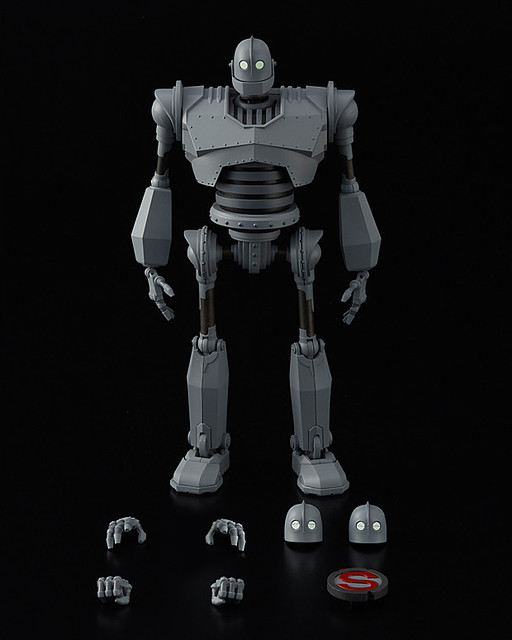 RIOBOT系列作品都有部份材質會使用「壓鑄(ダイキャスト)」材質來呈現,真是附和這次的鐵巨人題材啊!此次作品附有握的手掌、張開手掌、可以替換的頭部×2,以及看板(Sマーク)還有可以替換用的歯配件等等,讓玩家可以替換各式配件呈現出劇中各種令人印象深刻姿態,喜愛早期動畫《鐵巨人》的玩具人千萬別錯過了啊!