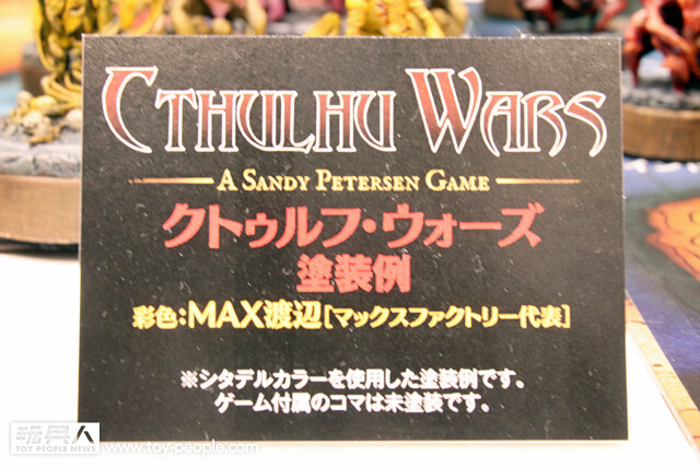 攤位中依舊散發著濃濃的克蘇魯魅力,展出了由 Max Factory「MAX渡邊」塗裝的人氣桌遊《克蘇魯之戰(Cthulhu Wars)》模型!而「Cthulhu Evolution」的作品完成度也更為提昇,並預計今年春季發表詳細資訊!