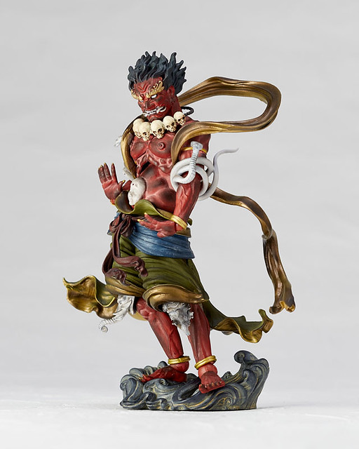 這次將其頸上戴著髑髏以及怒髪白眼的莊嚴形象完整再現,此次原型製作是交由系列製作總指揮「竹谷隆之」大師所執行,作品全身約有22處的可動關節,可以輕鬆擺出各式姿態,附有交換手首配件與底座等等配件,喜愛《タケヤ式自在置物》系列的玩具人可以參考一下歐!