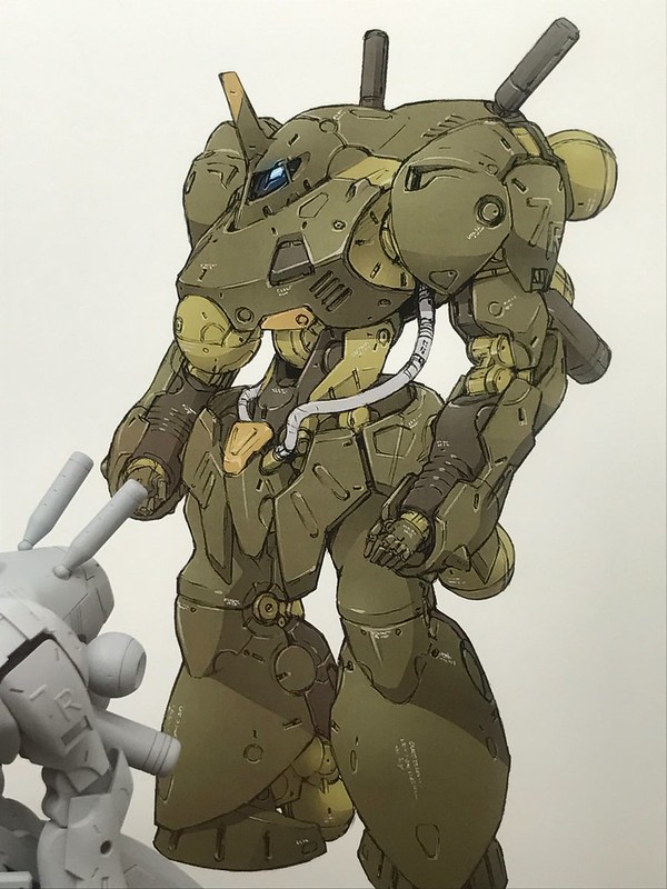 由新川洋司設計的重装甲大型FA「玄武」擁有壯碩、厚重的上肢與下半身,腰部、背部燃料罐卻是相對纖細,透過優美的曲面裝甲構築出極具份量的外型,後方噴嘴更是系列首度使用的球狀造型,讓人感受濃厚的「新川洋司」風格呀!