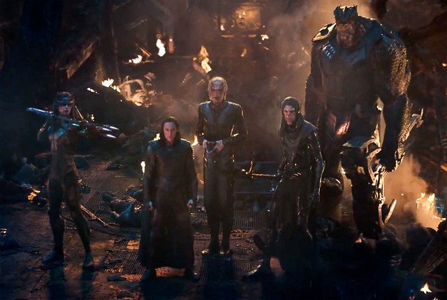 ▼ 在《無限之戰》最新預告中,可以看到黑暗教團包圍著洛基的場景,這明顯是接續《雷神索爾:諸神黃昏》的劇情,薩諾斯襲擊了阿斯嘉一行的太空船之後的慘況。