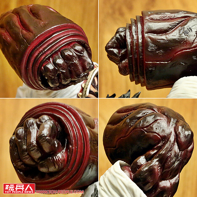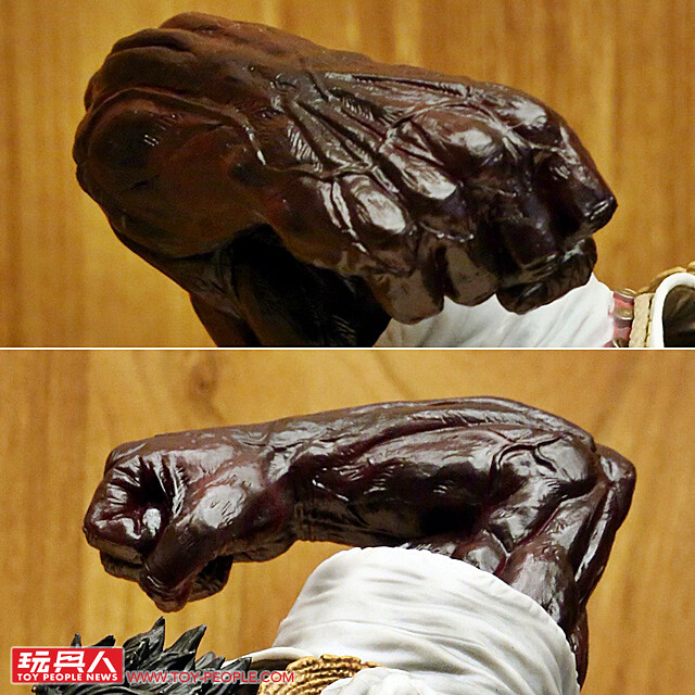 ▼ 右手前伸的架勢,同樣也刻畫了大量的肌肉紋理細節,雖然不是攻擊姿勢的握拳,但也同樣充滿了力道與威壓感;滿滿的造型細節看了真是過癮啊~
