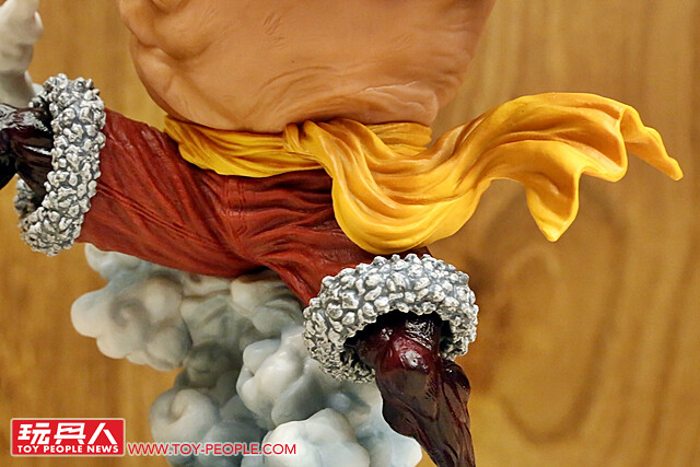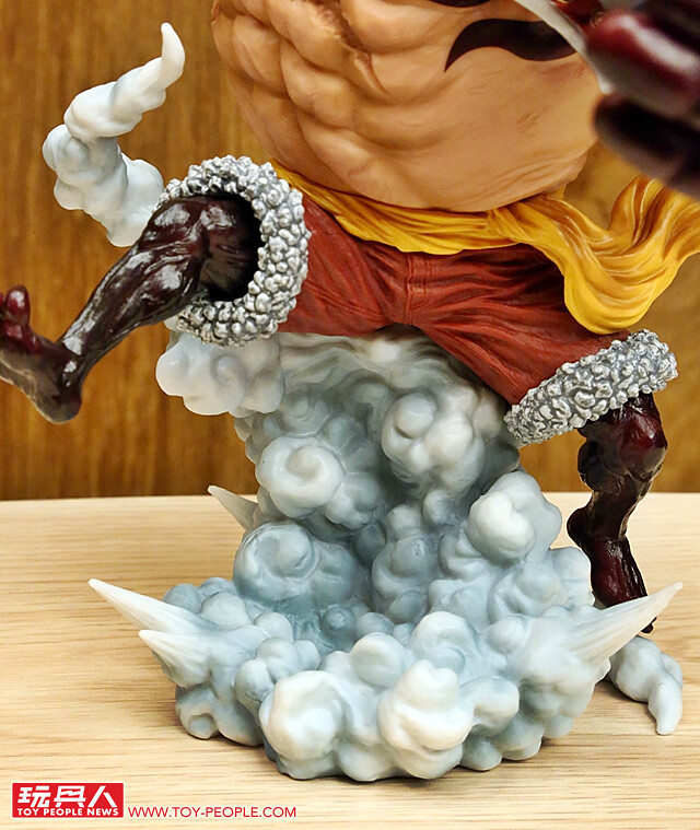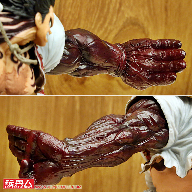 ▼ 從這個角度看過去,能充分的感受並想像魯夫下一個瞬間出拳的強大力量... 在漫畫中,能藉由速度線或畫面張力的處理,而動畫則是藉由動態與運鏡的技巧來呈現力道與氣勢;但是靜態的立體化作品就必須藉由刻畫大量的細節、與講究的姿勢架構來呈現,一款優秀的立體化作品能讓我們生動地藉由不同角度,來觀察這個充滿魄力的瞬間,感受平面作品無法體驗的震撼。