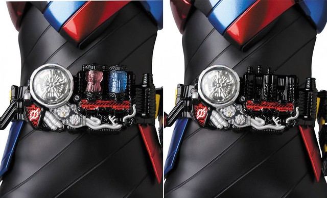 此次還在頭部內藏有Led燈的發光設計,可以讓面罩的眼睛部份亮起光線,外觀上採用專用金屬面材質和壓花黑色材質再現其質感,以及附有Build Driver變身腰帶、變型“滿瓶”的兔子,坦克,大猩猩,鑽石藥水等等,另外還有金屬支撐架與專用底座等等豐富配件,喜愛《假面騎士Build》特攝劇系列的玩具人可以參考一下歐!
