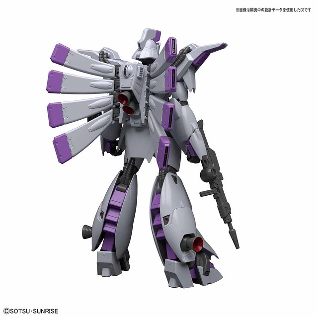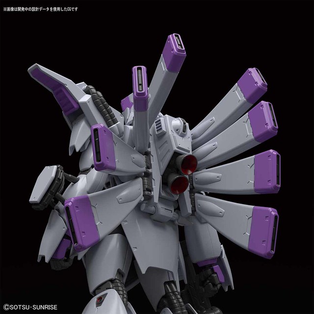 除了隨劇場版推出的1/100套件,日後再也沒出過組裝模型的「比基納‧基娜」終於以「RE/100」回歸!使用與「MG 1/100 鋼彈F91 Ver. 2.0」同等的高密度細節,不論是各處機構或曲面裝甲都能感受到比基納‧基娜的優美設計,腿部散熱口設有膝關節連動機構,能在不損及機體設計的情況下做出大幅可動,背部的 8 枚翼狀推進器也是各個獨立可動。