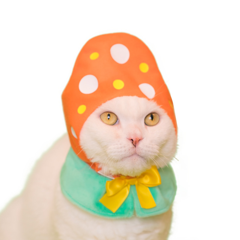 過去奇譚俱樂部也曾經推出過第11彈「萬聖節版」、第13彈「聖誕節版」這類的節慶主題轉蛋,再加上這次的復活節,看來以後家裡的貓皇每逢佳節就得「可愛變身」一次啊~兔子耳朵看起來軟綿綿的,摸起來一定很舒服,而橘子款的點點彩蛋也很療癒呢,最後一款黃底帶有粉色、水藍色條紋的彩蛋款式則強烈散發出復活節的氣息,值得一提的是,這次不只是頭套,每一款在脖子的地方還綁有蝴蝶結、用上粉粉的布料裝飾,看起來實在太萌了啦~