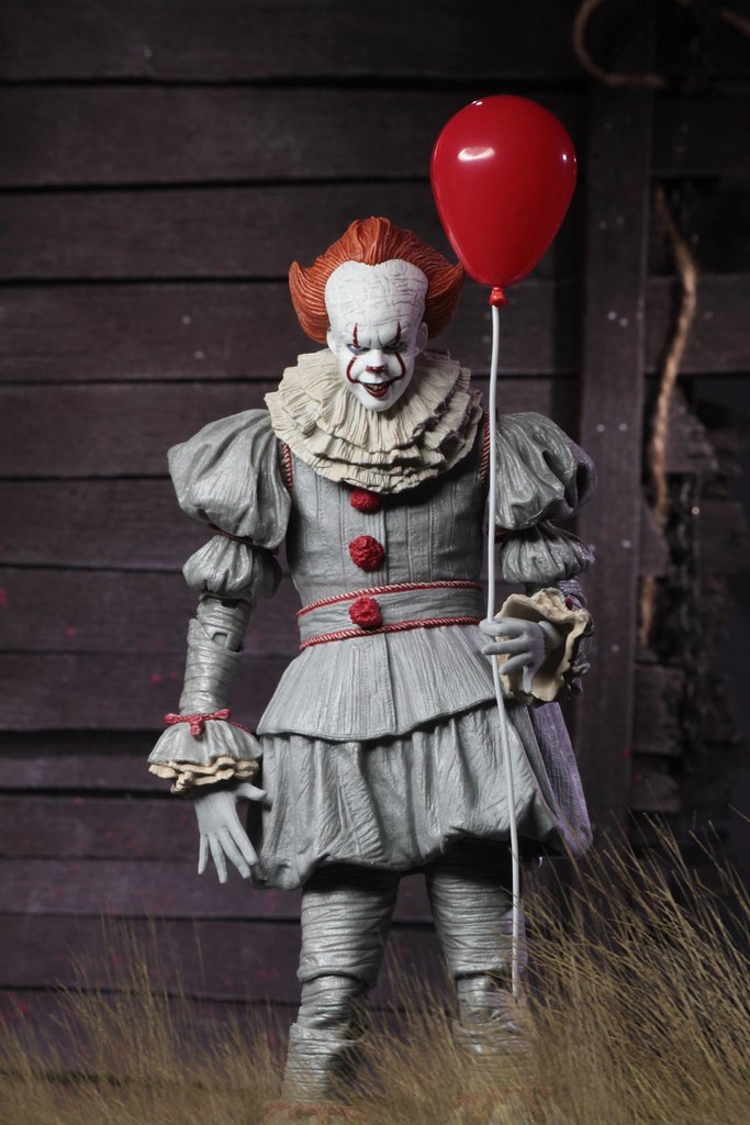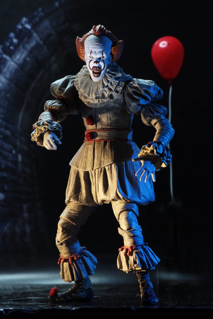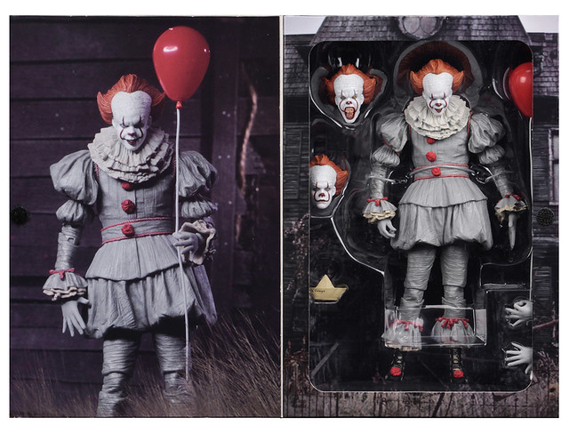 《牠(2017)》改編自史蒂芬·金1986年同名小說,故事發生在詭異的「德利小鎮」,描述魯蛇俱樂部的青少年被「牠」盯上,必須面對自己心裡最深層恐懼的冒險故事,以一個追著紙船的小男孩「喬治」被拉進地下水道展開;「牠」是個可以任意變形的生命體,非常喜歡帶有「害怕」味道的肉體,所以時常變成他人內心恐懼的樣貌,因為小孩更加容易受到驚嚇、散發美味的「恐懼香氣」,所以「牠」時常以小丑的外表現身.....。NECA 旗下除了異形、終極戰士、超級英雄的作品之外,還有許多來自經典鬼片的人偶、怪物玩具,造型上都有一定的水準,加上易於把玩的尺寸,絕對是恐怖片愛好者的必備收藏。