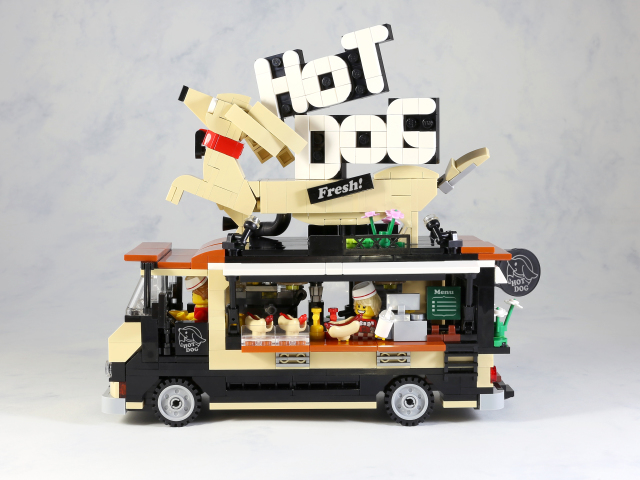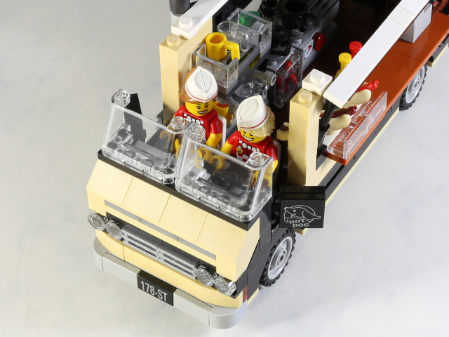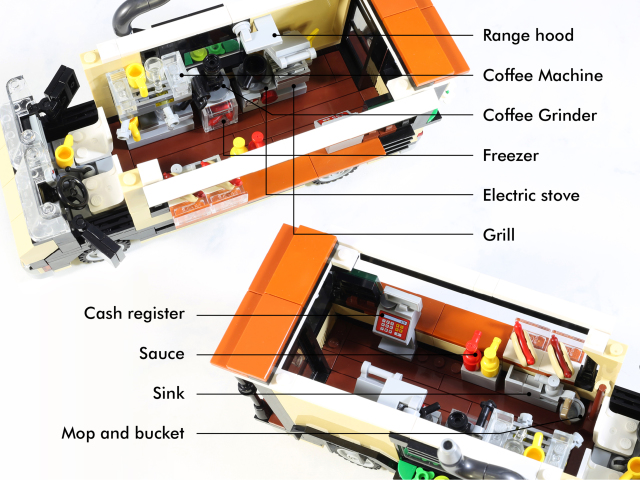 在這台使用620片零件、8格寬的車身裡,擁有舒適的雙人駕駛艙,車體內擺放各式廚房設備,素雅的配色加上綠色植物點綴,相當適合放在樂高城市裡。
