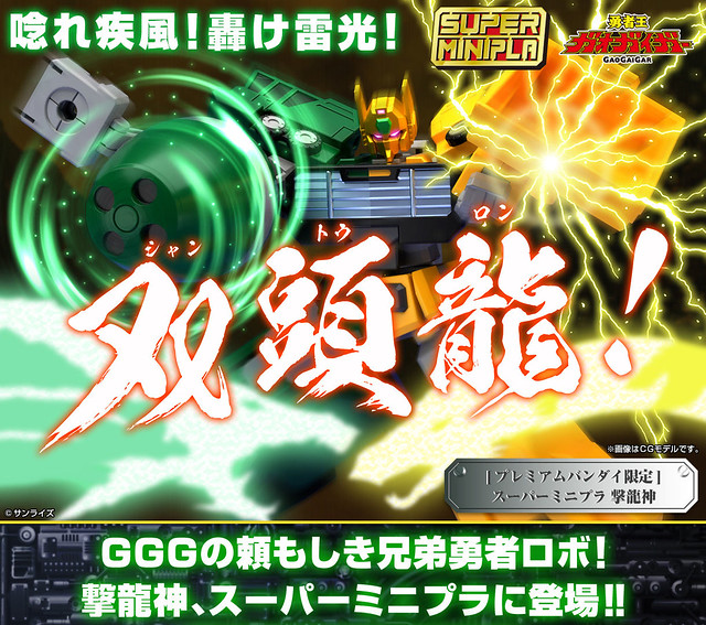 日BANDAI萬代玩具公司的食玩部門事業部「超級迷你盒玩」(スーパーミニプラ/SUPER MINIPLA)系列,以《勇者王GaoGaiGar》動畫為題材已經公開過第一彈「勇者王GaoGaiGar」與第二彈「勇者王GaoGaiGar 2」以及第三彈「超龍神」後,近日官網繼續公開將推出《勇者王GaoGaiGar》系列「撃龍神」的宣傳照片與販售相關資訊!