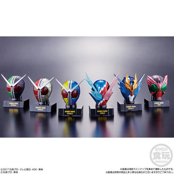 頭部複眼的部分也使用透明材質完整再現劇中《假面騎士》的樣貌,此次"第五彈"將收錄《假面騎士W》劇中的「假面騎士W 旋風王牌型態」、「假面騎士W 炙熱鋼鐵型態」與「假面騎士W 月神槍手型態」等等三種不同型態,以及《假面騎士Build》劇中的「假面騎士Build 兔子坦克氣泡型態」和「假面騎士Cross-Z」,還有「假面騎士OOO TATOBA COMBO」等等六種類角色頭像,喜愛《假面騎士》系列的玩具人可以參考一下歐!