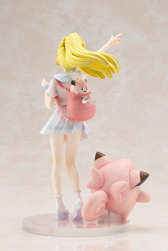 「加油莉莉艾 & 皮皮 1/8比例模型」以遊戲造型的插畫為基礎製作,忠實再現原畫中精緻的細節與色彩,飛舞的馬尾、躍動的裙襬、手持精靈球的右手,各部都能感受到加油莉莉艾的活力,可愛的皮皮也以還原插畫的造型擺出活潑的姿勢,不只這隻皮皮,加油莉莉艾的背包裡還有一隻「皮皮玩偶」探出頭呢!