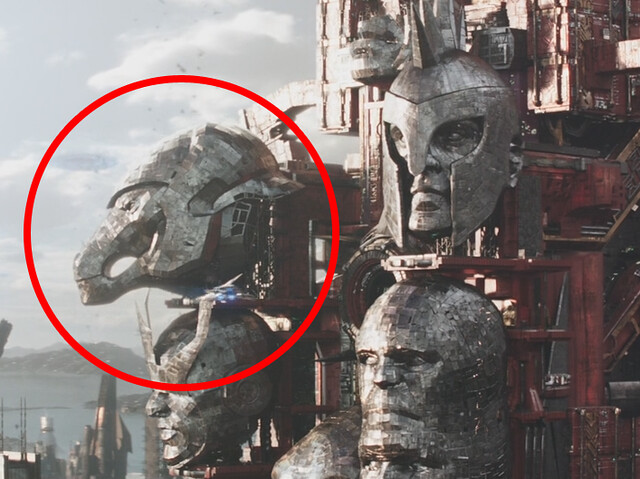 ▼ 《雷神索爾3:諸神黃昏》的鬥士塔上有著歷代冠軍的頭像,馬面雷神(Beta Ray Bill)的頭像就在此以彩蛋的形式登場。