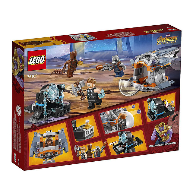 ▼從包裝盒背面來看,這台飛船的後方可以跟「LEGO 76102 Thor’s Weapon Quest」的逃生艙結合。